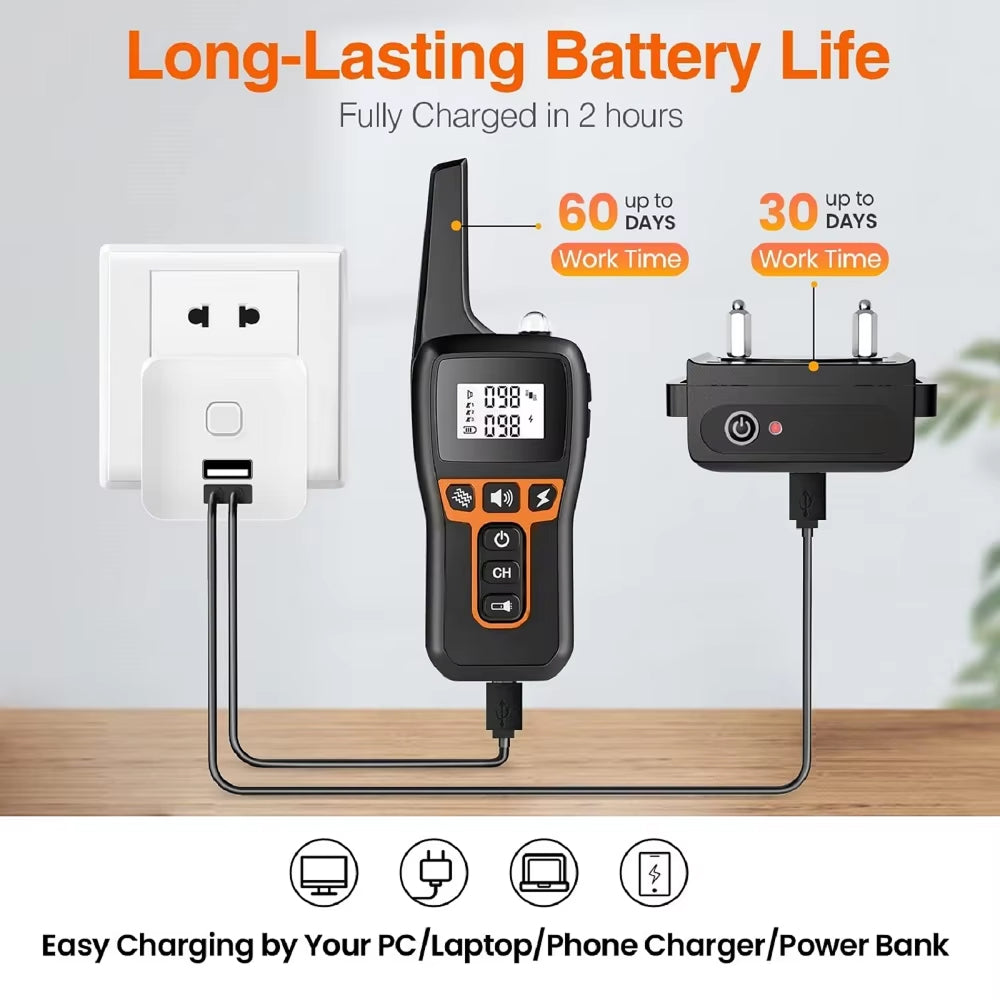 With 100 intensity levels, you can fine-tune the training experience to your dog’s exact needs — from extra-sensitive breeds to stubborn behavior cases.